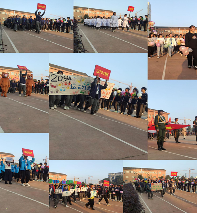 然后就是2082班的校旗方阵,2076班的鲜花方阵,1959班的排球方阵,2087班的篮球方阵,裁判员方阵等等,他们一个个洋溢着青春的色彩,昂首挺胸,面带微笑的向我们走来。脸上仿佛写满了坚毅,坚信自己能为班级增光添彩。