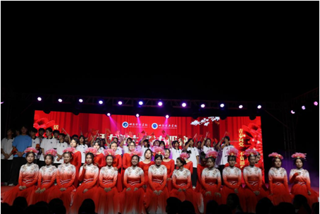 晚会在《歌颂祖国》歌舞中拉开帷幕,精彩纷呈的节目让人目不暇接。舞蹈《灯火里的中国》烘托出节目的喜庆祥和,武术《少年强》将晚会推向一阵又一阵的高潮,《动舞青春》使现场掌声、欢呼声、喝彩声此起彼伏,一浪高过一浪。最后,全场观众一起高唱《我和我的祖国》,在一片祥和、欢快的氛围中,文艺晚会圆满落下帷幕。整场晚会歌舞交融,同学们用自己的特有方式表达了对祖国深情祝福,展示了学校师生们斗志昂扬、蓬勃向上的良好精神风貌。