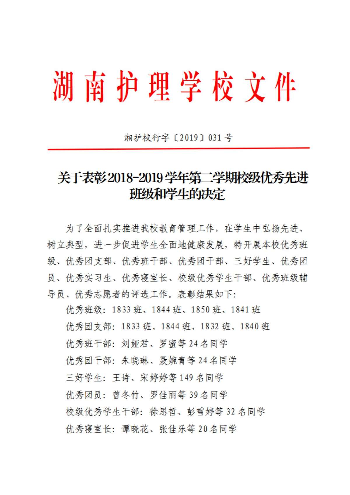 上一篇: 湘护校行字〔2019〕037号关于印发《湖南护理学校教学工作诊断与改进实施方案》的通知