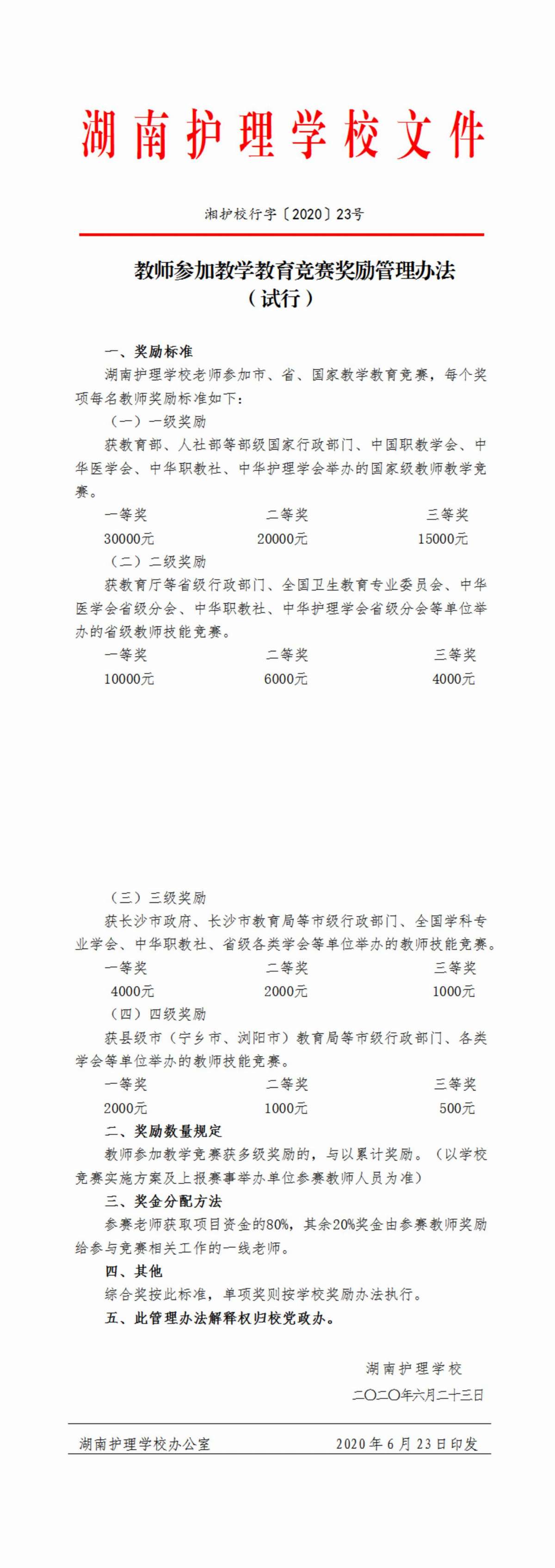 上一篇: 湘护校行字〔2020〕22学校参加学生教学教育竞赛奖励管理办法