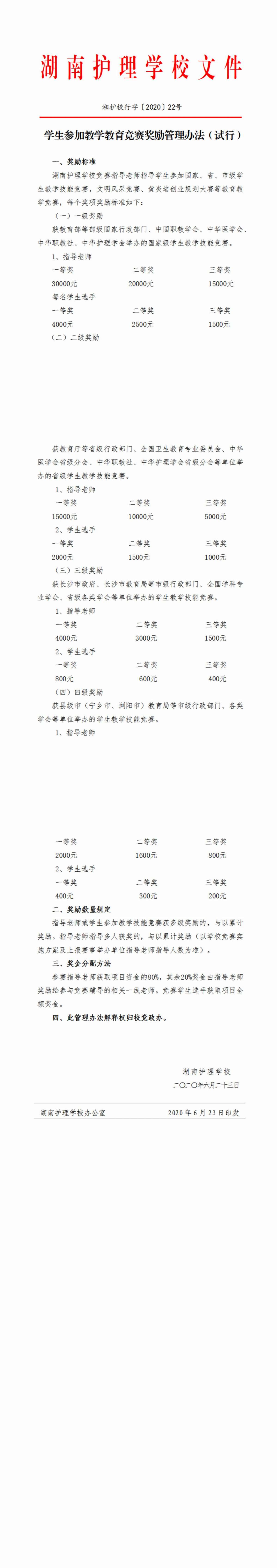 下一篇: 湘护校行字〔2020〕23教师参加教育教学竞赛奖励管理办法