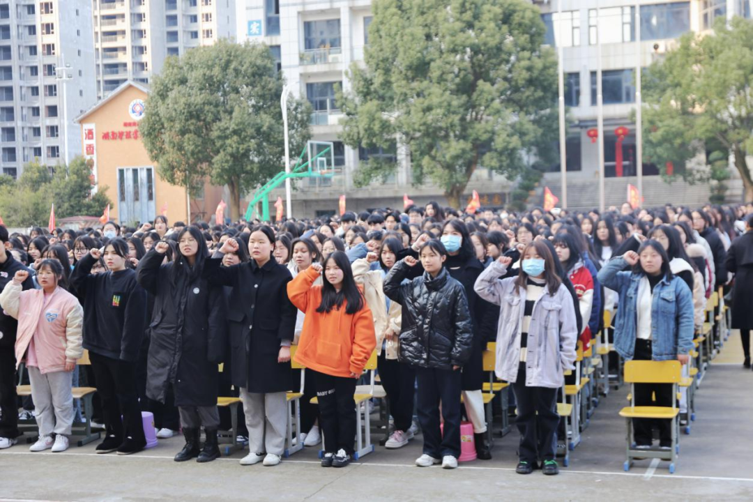 愿同学们以最饱满的热情,最刻苦的精神,最坚韧的毅力,脚踏实地,朝夕必争,全力以赴!不负父母的期望、老师的厚望、自己的青春,夺取高分,再创辉煌!