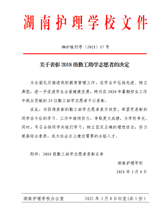 上一篇: 湘护校行字【2021】19号关于表彰2020-2021学年第二学期校级优秀先进班级和学生的决定
