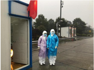 2020年2月湖南护理学校附属医院(湘护校医院)医务人员主动报名作为志愿者,参与到地方疫情防控工作中,金洲镇卫生院及白马桥社区卫生服务中心支援。同时,根据统一部署,安排医务人员在金洲高速收费站承担来往车辆人员的体温检测和车辆检查工作。所有工作人员根据安排,给每一位乘客仔细检测体温,并送上温馨提示,让广大司乘人员在这个不平凡的春节假期感受到一丝温暖。