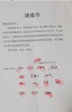 湘护校医务人员请战书