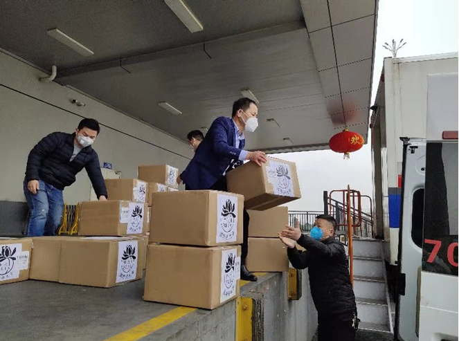 湖南护理学校校长丁志强附属医院院长王新军院长亲自整理援鄂物资。