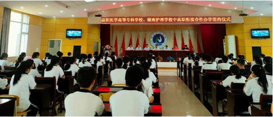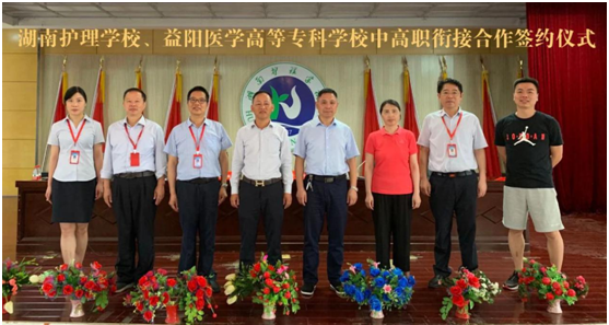 6月8日,我校与益阳医学高等专科学校签订中高职衔接合作意向书。益阳医学高等专科学校副校长刘高华、教务处长傅学红、招就处长张凡,湖南护理学校理事长丁志强、校长郭正良、党支部书记赖青、总督学周浪舟、副校长曹淑媛、工会主席王娟参加并出席签约仪式。