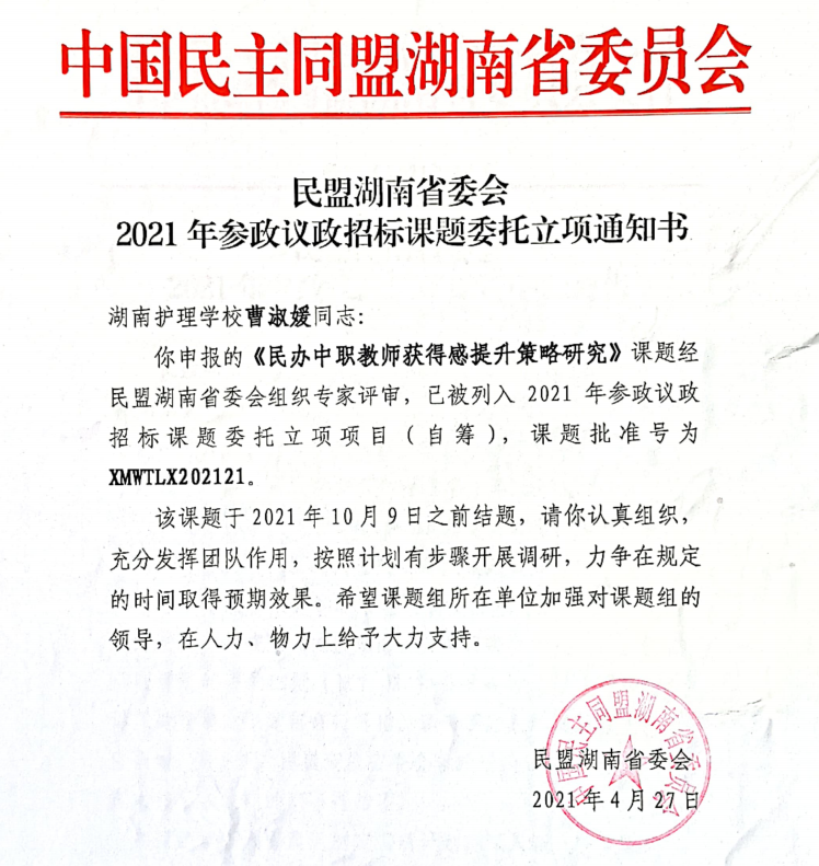 曹淑媛民盟省委课题2021立项通知书