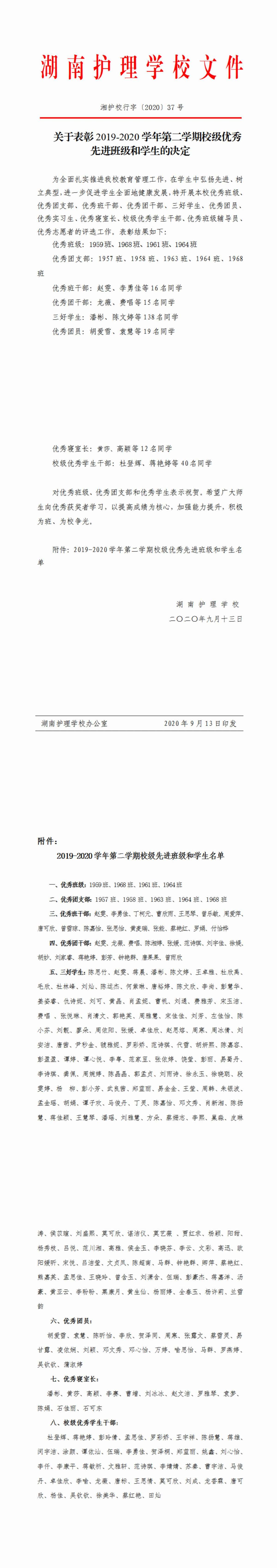 上一篇: 湘护校行字〔2020〕36号 关于表彰2019-2020学年第二学期校级优秀实习生的决定