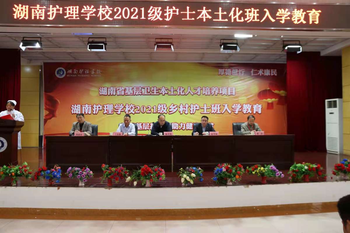 丁志强代表湖南护理学校对2021级乡村护士本土化班全体同学表示祝贺。他表示,学校将秉承“厚德健行,仁术康民”的校训,本着“自强不息,守正推新”的湘护校精神,贯彻习近平总书记重要讲话精神,坚持培养“下得去、留得住”医护康养专业技术技能型人才。让更多贫困家庭的孩子能读成书、读好书,成为具有一技之长的有用应用人才,成为守卫基层健康使者和家庭脱贫致富的带头人!