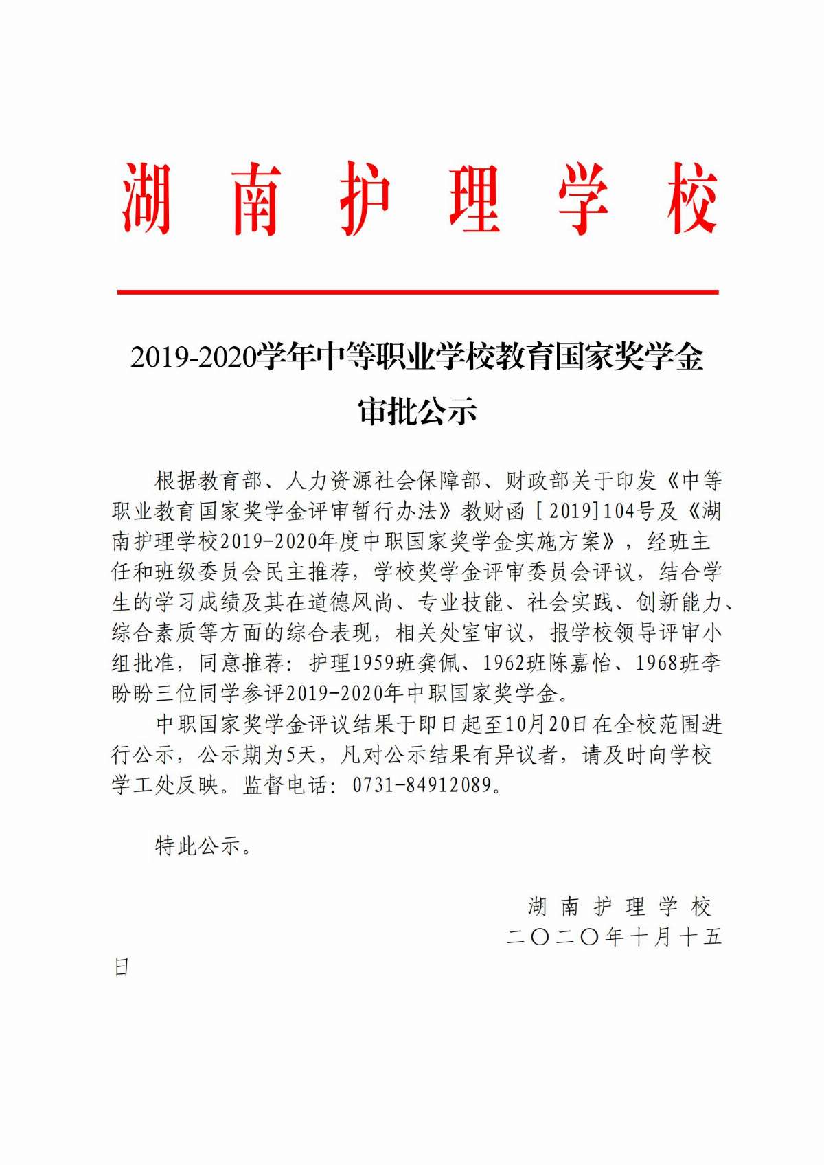 上一篇: 湖南护理学校2019-2020学年国家奖学金公示名单