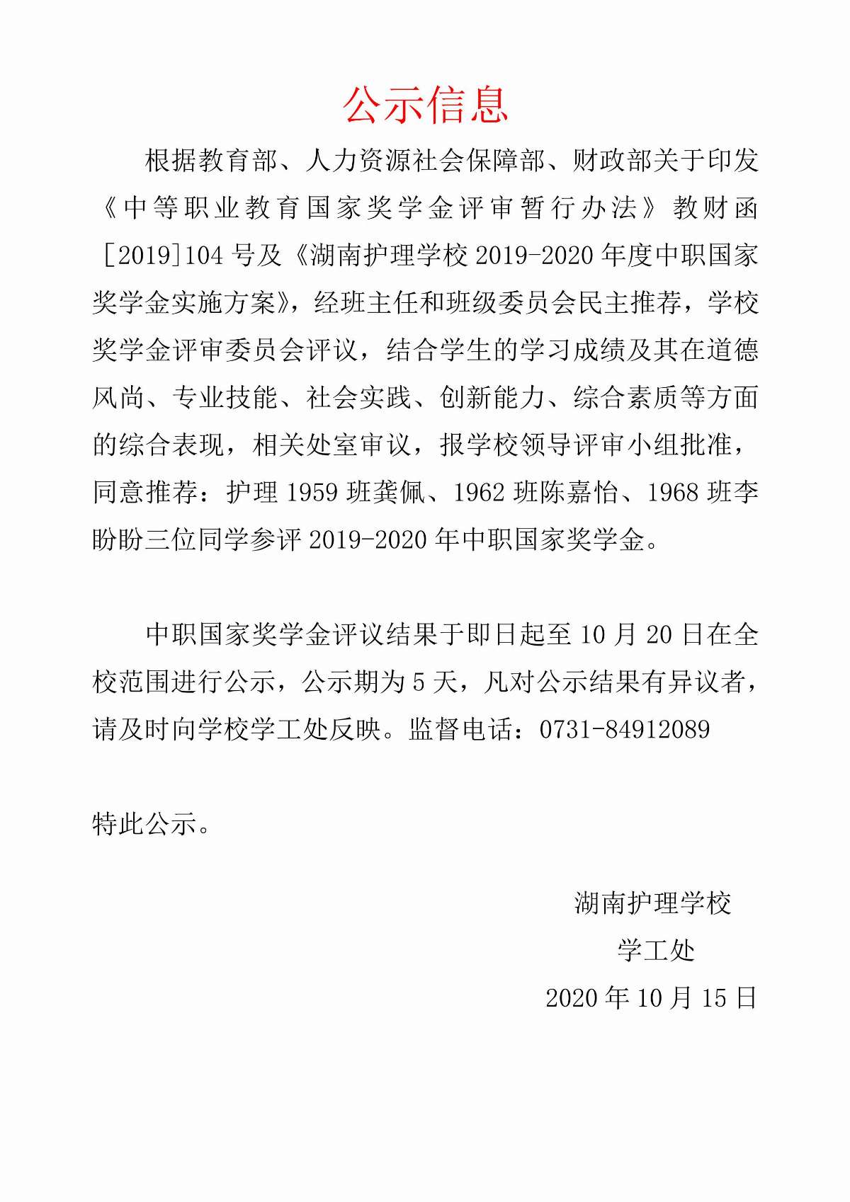下一篇: 2019-2020学年中等职业学校教育国家奖学金审批公示