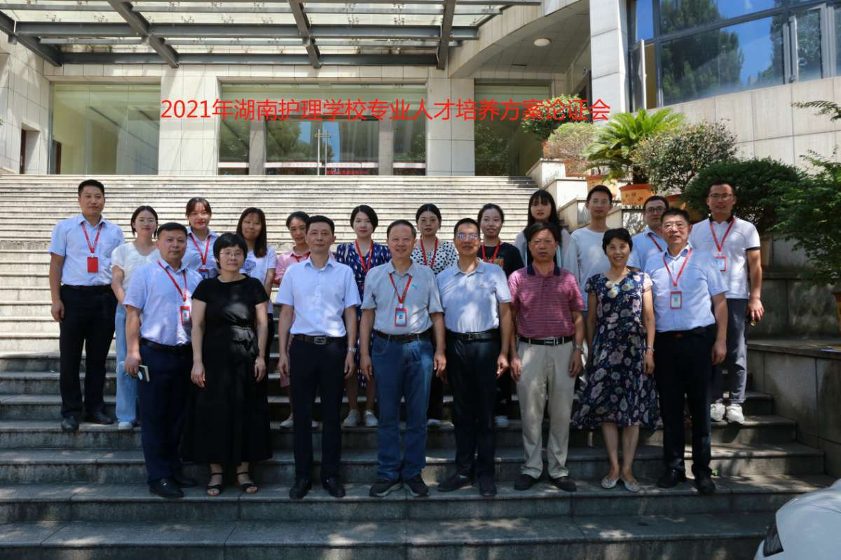 出席本次论证会的职业院校和企业专家教授有湖南食品药品职业学院童定秋教授、长沙卫生职业学院佘金文教授、长沙卫生职业学院伍梅芳教授、湖南省人民医院副主任护师马海燕、宁乡湘护校医院王新军院长、湖南中医药大学吴红娟教授,校内领导有学校校长郭正良教授、党支部书记赖青教授、总督学周浪舟教授、各系(学科)部主任、教研室主任、各专业骨干教师以及教务处全体成员。