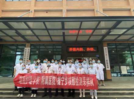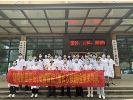 2021年84日上午,湖南护理学校理事长丁志强发出《关于号召全体教职工积极参与疫情防控工作的倡议书》,马上就有100多名志愿者积极报名。经过强化训练后,85日早上6:30,在湖南护理学校附属医院门口举行出征仪式。学校理事长丁志强牵头,学校副校长带队赴长沙市中心医院为交通工作人员做核酸检测采样的任务;附属医院王新军院长带队赴宁乡支援协助宁乡城郊街道蓝月谷集中为黄码人员做核酸检测采样的任务。