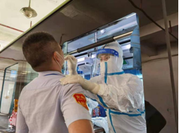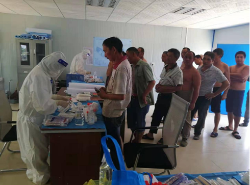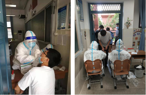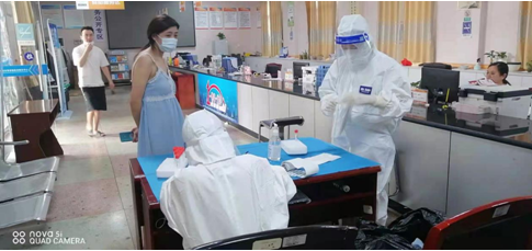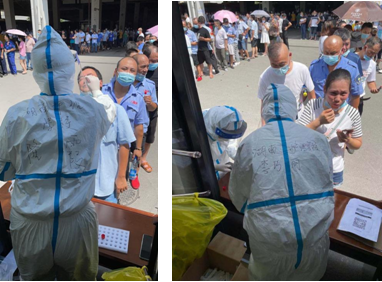 7月31日早上7点,10位医护人员前往浏阳市官桥镇,为官桥镇政府工作人员、村民及学校新校区建设工地的施工人员、农民工进行免费的核酸检测。