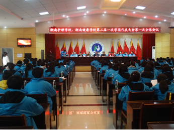 紧接着是学生会主席陈庆以及团委副书记杨艳玲做学生会工作报告和团委会工作报告,在报告中对湖南护理学校、湖南健康学校第一届团委工作进行了总结和充分的肯定,并对将要成立的第二届团委委员会工作提出了计划和设想,号召全校团员青年,牢固树立团员意识,认真落实科学发展观,开拓创新、锐意进取,不断开创我校共青团工作的新局面。