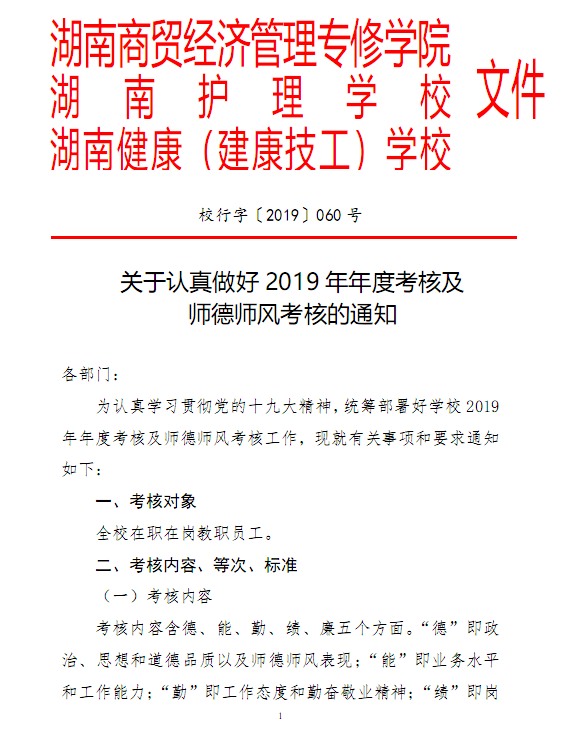 关于认真做好2019年年度考核及师德师风考核的通知