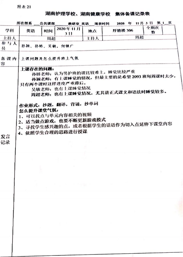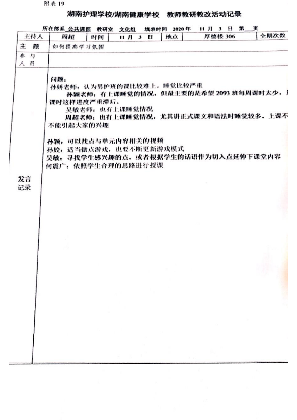 2020年秋季学期教研教改记录